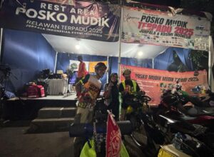 Beri Dukungan Semangat Kepada Relawan Jurpala, Tokoh Masyarakat Karang Asih Kunjungi Posko Mudik Terpadu