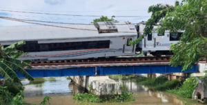 BRMEDIABEKASI.COM - Kereta Api Purwojaya relasi Gambir-Kroya anjlok pada dua bagian belakang saat melintas di Emplasemen Stasiun Kedunggedeh, Bekasi. Tepatnya...