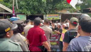 BRMEDIABEKASI.COM | Karawang – Aksi demonstrasi warga Kampung Sirnamulya di Kampung Wanasari, Kelurahan Karawang Wetan, Kecamatan Karawang Timur, Kabupaten Karawang, Jawa Barat berujung bentrok, Rabu (12/2/2025),Demonstrasi yang juga diikuti emak-emak tersebut terkait sengketa lahan.