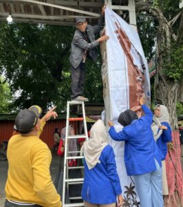 Pemasangan spanduk gapura ini dilakukan dengan melibatkan masyarakat setempat agar